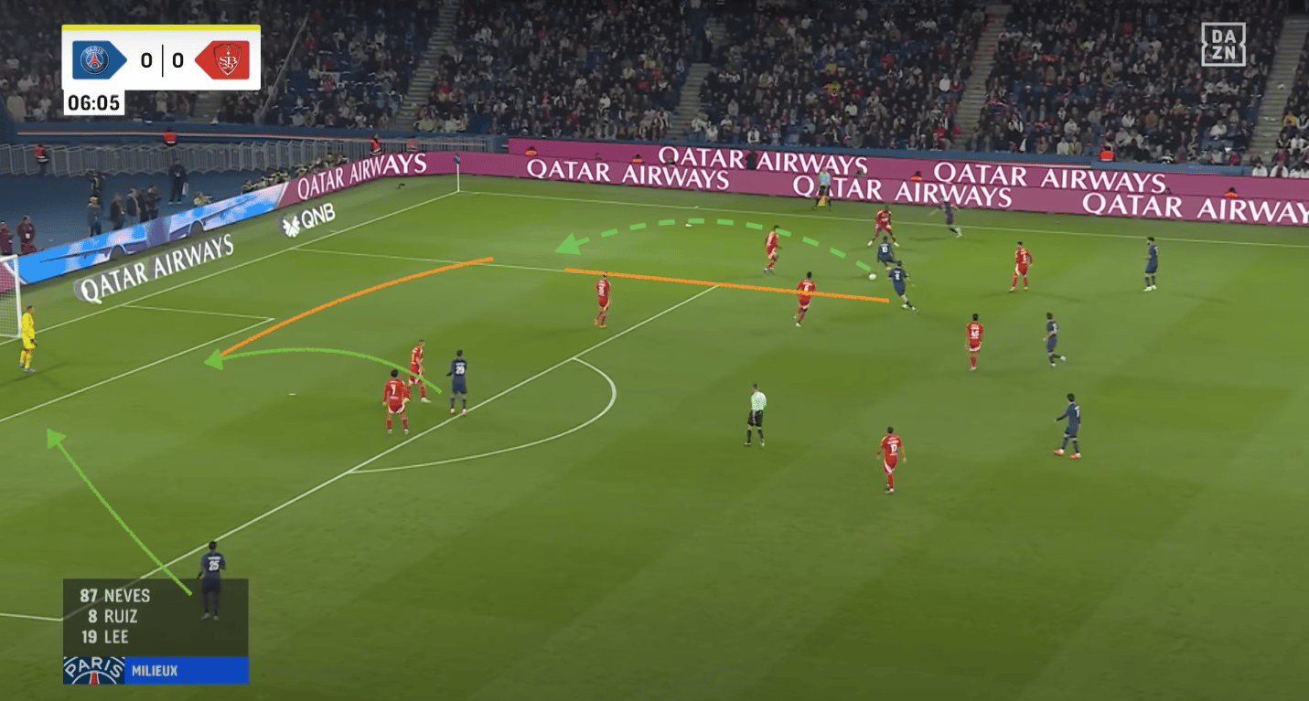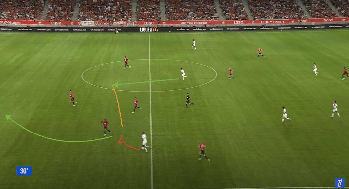 Si c’est Nuno Mendes, il peut aussi monter pour faire décrocher un des 3 du milieu, dans le but de profiter de ces qualités de percussion et de vitesse.