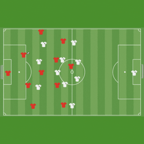 Les latéraux ou défenseurs centraux de Newcastle ont pour consigne de trouver l’espace libre dans le dos du central et latéral. Cette passe pour “personne”, force l’équipe adverse a reculé, et à faire jouer les défenseurs adverses en reculant vers leurs buts.