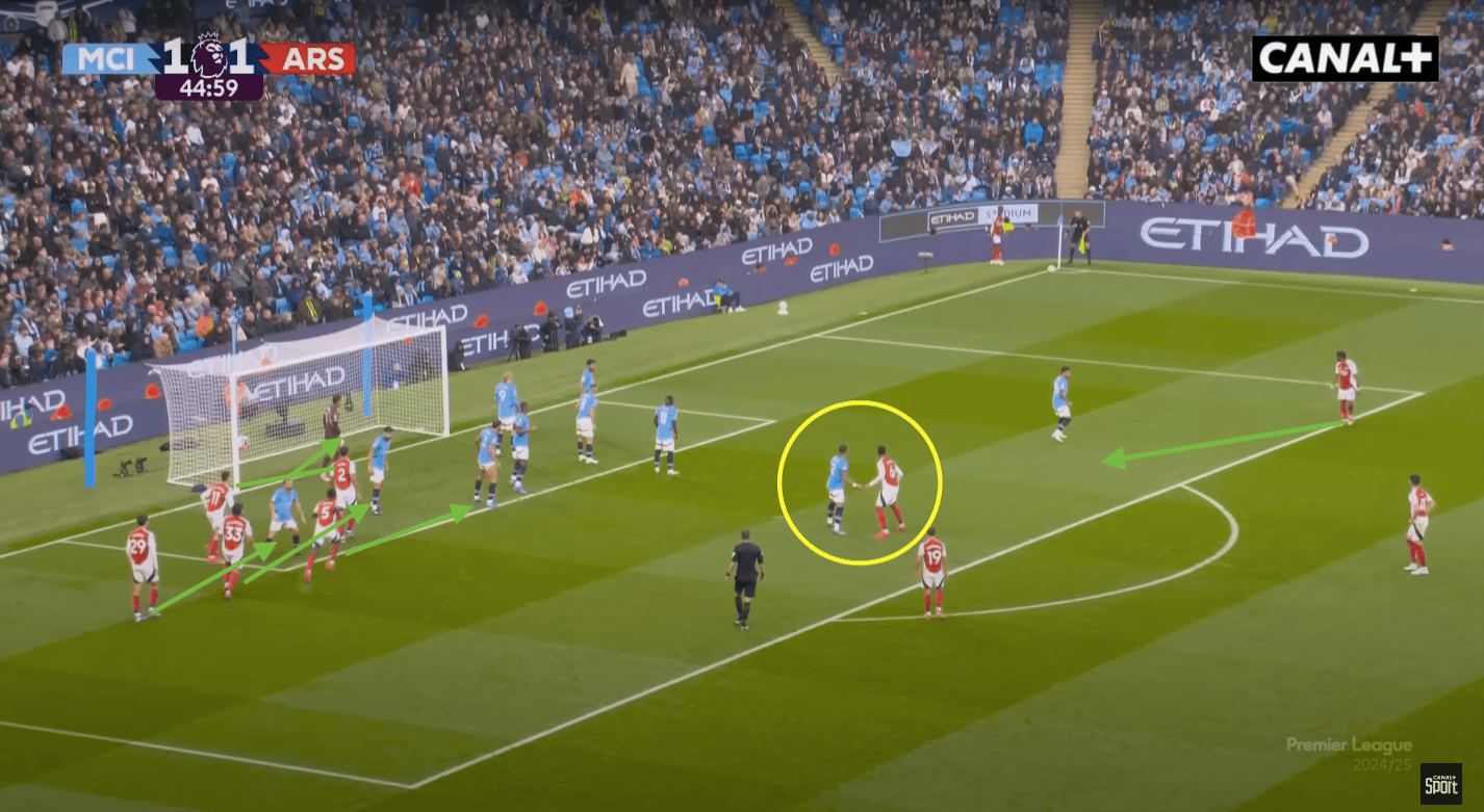 Vous vous demanderez sans doute pourquoi Gabriel est marqué par un joueur bien plus petit que lui, surtout lorsque l’on possède des joueurs tels que Gvardiol ou Ruben Dias.