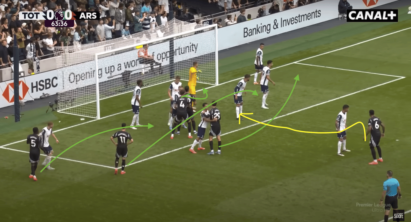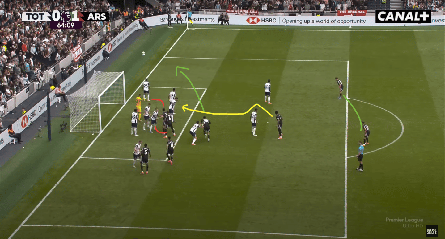 Les buts de Gabriel face à Man City et Tottenham sont une preuve que les coups de pied arrêté peuvent être une arme fatale, si bien exploités. Cette notion de bloc pour donner de l’espace à un joueur dans une position donnée est une notion que l’on retrouve énormément au basket.