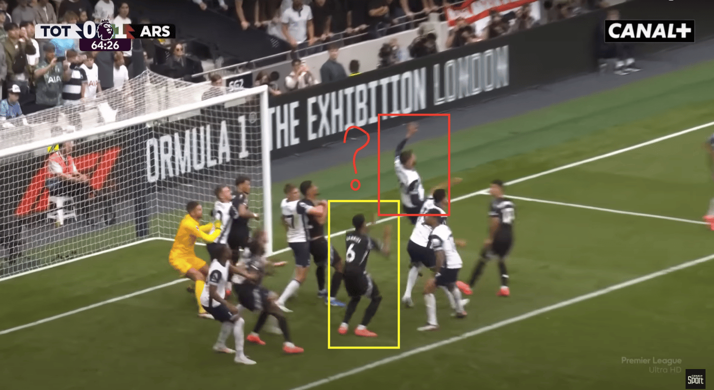 À noter aussi l’erreur de d’appréciation de la trajectoire par Bentancur, qui choisit de défendre le premier poteau, au lieu de s'occuper du joueur visé sur les corners d’Arsenal, Gabriel.