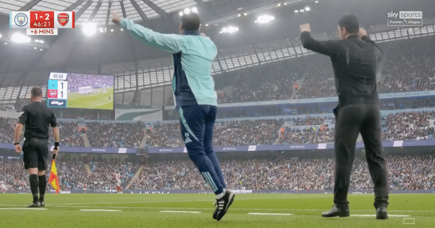Lors du but de Gabriel face à City, Nicolas Jover se trouve, comme sur chaque CPA, à côté de Arteta.