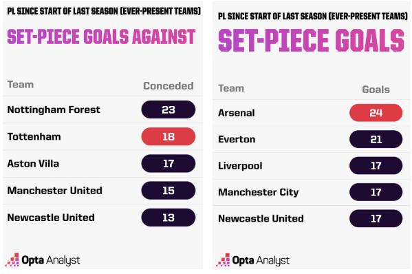 Arsenal, c’est des corners rentrants en 2023/2024: